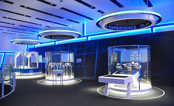 上海展臺設(shè)計中,由于展出內(nèi)容以及展示活動安排的需要,將場地分割成不同的區(qū)域空間,比如有的區(qū)域用來接待觀眾,有的區(qū)域用來陳列展品,有的區(qū)域用作多媒體互動,有的區(qū)域則作為休息空間等,而這些不同的區(qū)域之間則存在一定的邊界形式,我們稱為界面”。不同功能空間的界面處理是不同的,有的空間采用三面或四面圍合的形式,形成相對封閉的空間形式,而有的空間則沒有明顯的實體界定,是開放的、通透的。這種空間的界面處理有些是非常明顯的,明確地限定區(qū)域范圍,如隔墻、護(hù)欄、構(gòu)架高低落差等,它們往往明確限定出有效的參觀區(qū)域,指導(dǎo)人們的活動范圍以及行為方式。還有一些則是含蓄地暗示出不同功能之間的差異,比如展區(qū)內(nèi)照明強(qiáng)度的差異。色彩、材質(zhì)的差異,裝飾的差異以及展品之間的有效活動距離等,這些因素同樣可以對空間區(qū)域的分隔產(chǎn)生作用。當(dāng)然,這些對客戶區(qū)域劃分的影響是隱性的,通常是暗示我們不同區(qū)域的邊界范圍。